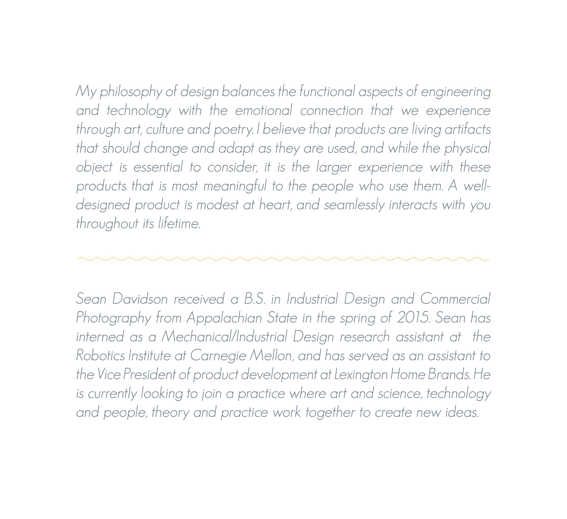 Development of my personal brand identity, philosophy and biography.